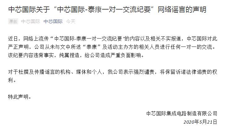 為關于中芯國際最新聲明的全文內(nèi)容,希望對大家有所幫助,再次感謝大家的關注與支持!
